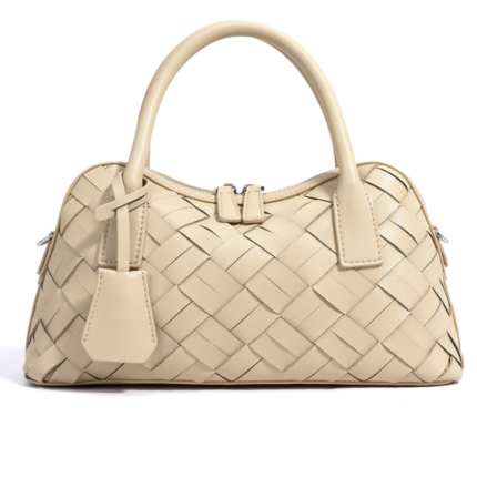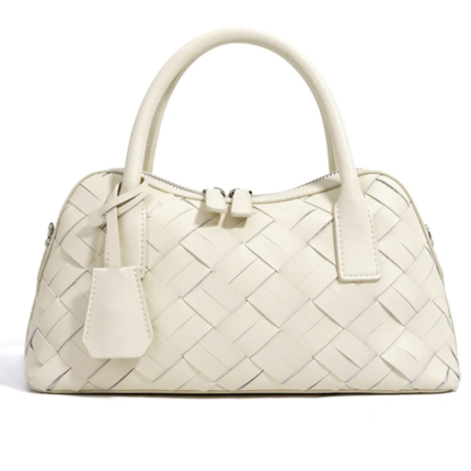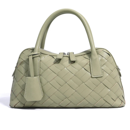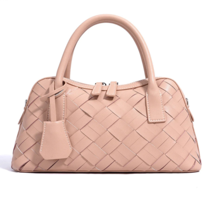 Luxury Hand-Woven Cowhide Boston Handbag for Women