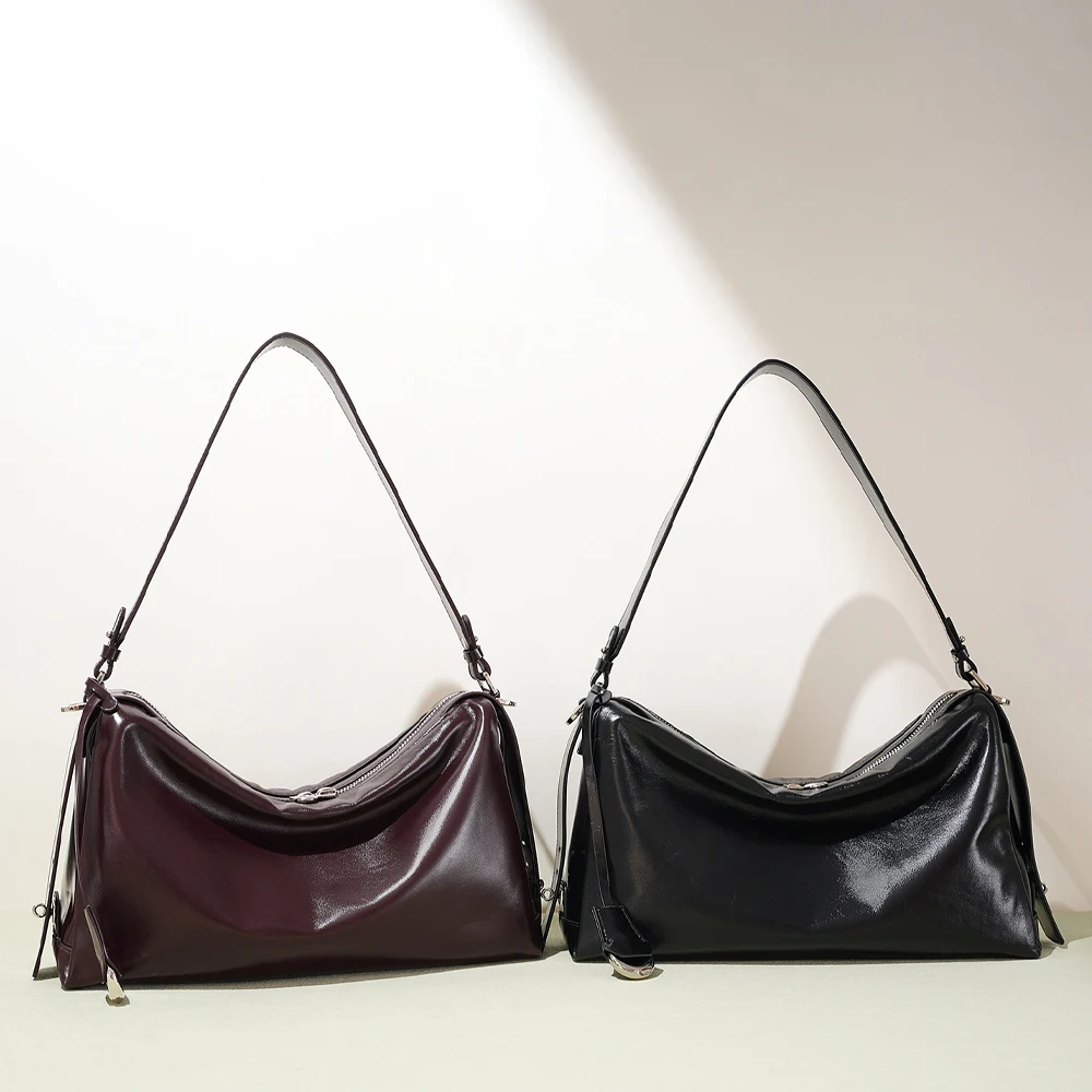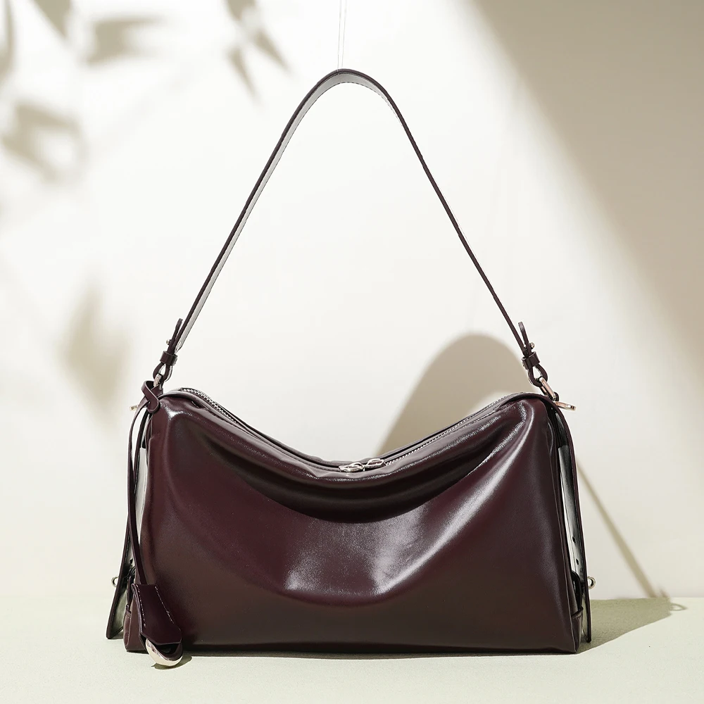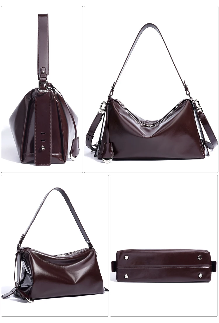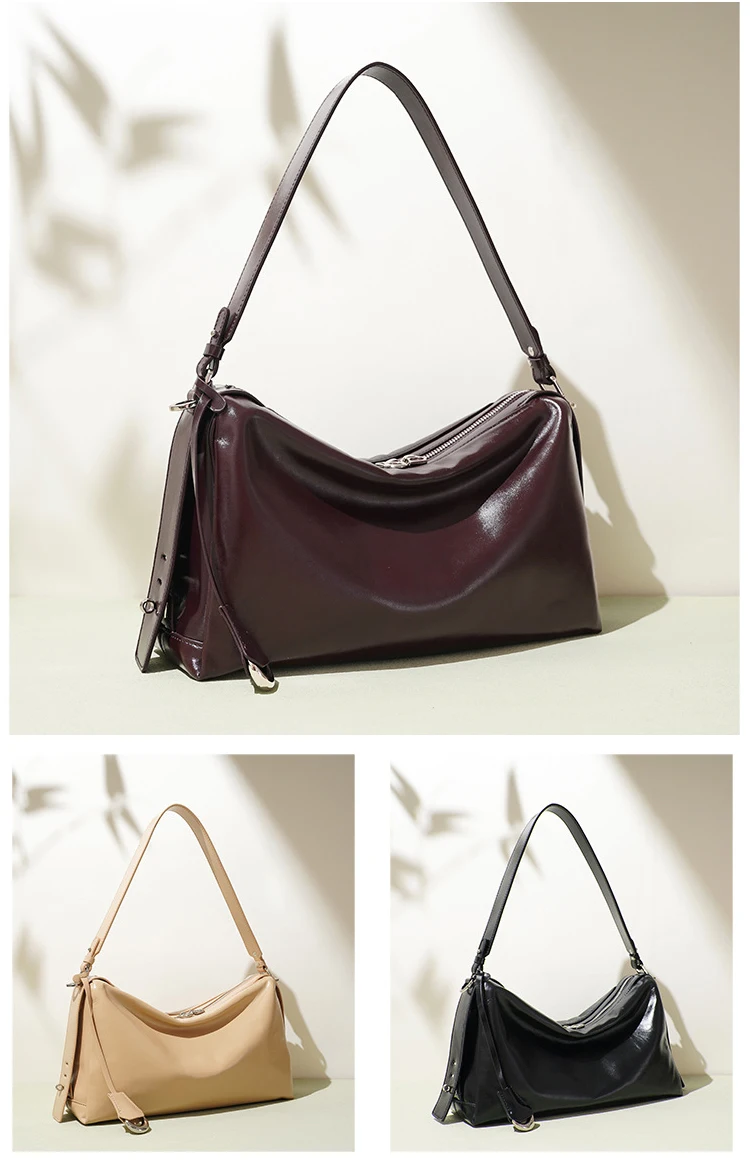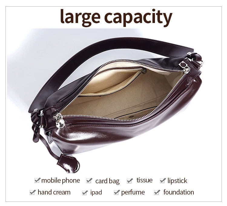 This women’s shoulder clutch bag is made of genuine cowhide leather with a zipper closure and polyester lining. Simple and fashionable, it features a single strap and is suitable for everyday, all-season use.