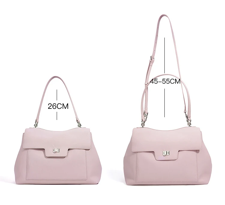 Women’s shoulder bag made of genuine cowhide leather, designed for everyday wear and includes an extra strap for crossbody use.