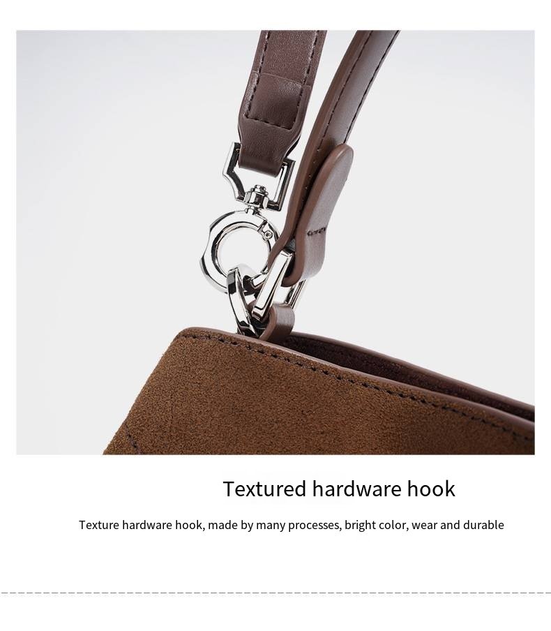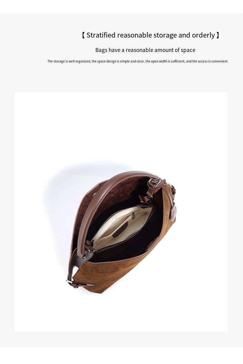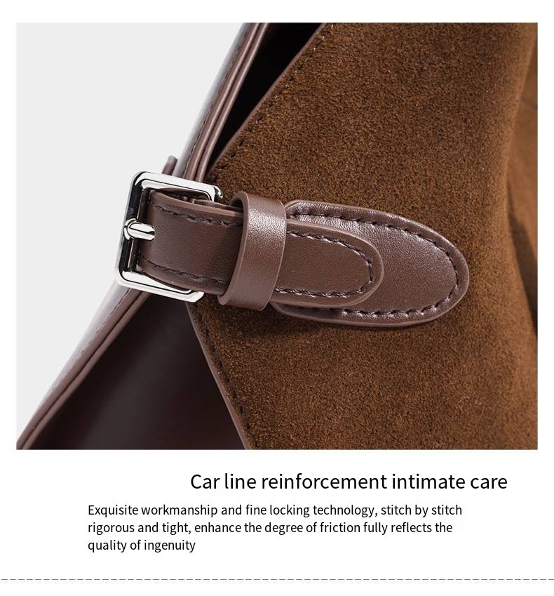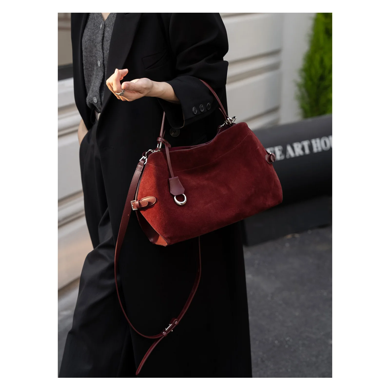 Luxury women’s handbag made of genuine suede cowhide leather with a refined brown frosted finish, designed for elegant everyday use.